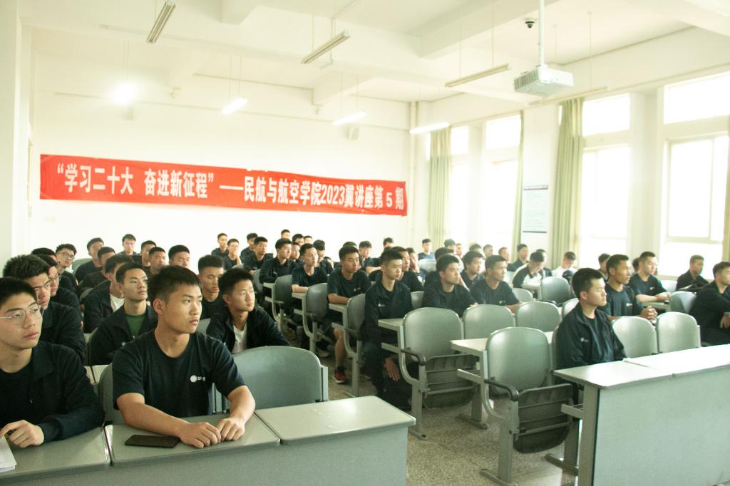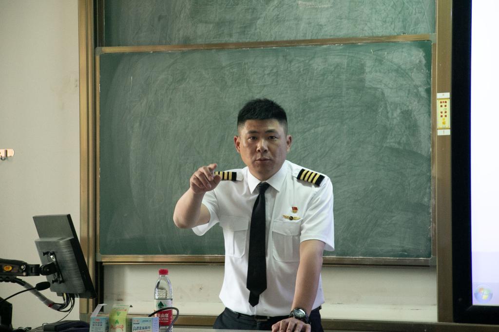 座谈交流中,刘方机长首先向同学们介绍了飞行员全生命周期管理办法,飞行学员需要先进行两年的理论学习,然后进入航校后面临诸多挑战,如飞行员私照、飞行员商照、仪表签注、航线运输飞行员执照等,只有拿到这些飞行执照才可以朝着机长的方向奋斗,让飞行学员深刻意识到飞行绝非易事。刘机长还结合民航史上发生的系列重大事故,向飞行学员阐释了敬畏生命、敬畏规章、敬畏职责的内核。“生命高于一切,责任重于泰山”是对敬畏生命最好的解释;敬畏规章是民航业的运行规律,是安全理论与实践经验的高度统一;敬畏职责是民航人的职业操守,是岗位职责和专业能力的高度统一,三者结合,才能实现民航的安全运行。最后,刘机长针对飞行员的身体素质锻炼要求,每天早上按时起床进行早操锻炼是必不可少的,这对飞行员适应高空与地面转换过程起到至关重要的作用,身体是革命的本钱,没有一个健康的体魄,自然无法胜任苛刻的飞行工作,鼓励飞行学员要坚持不懈,能吃苦,肯吃苦,才能进入飞行员的门槛,才能实现翱翔天际、报效人民的蓝天梦。