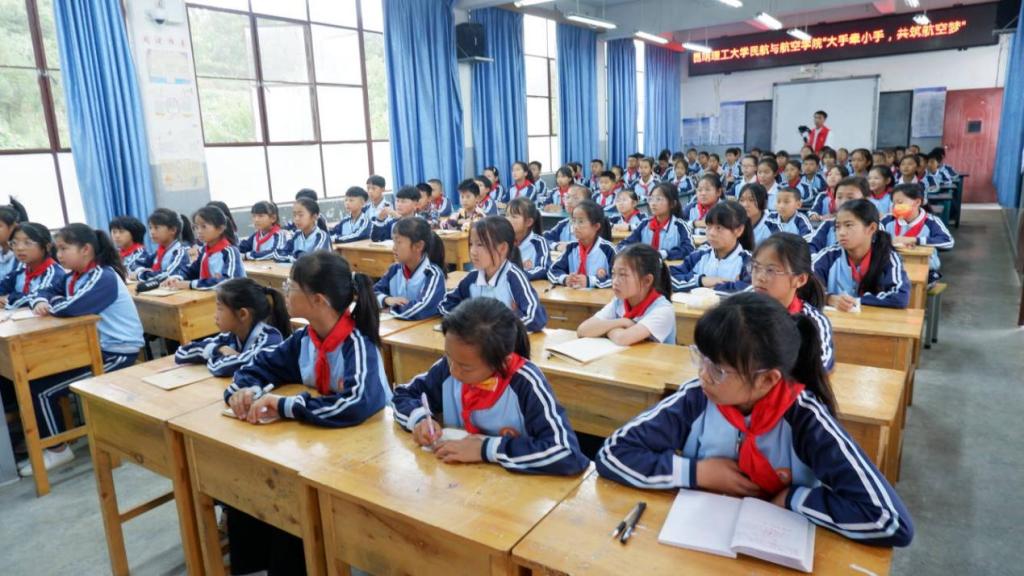 5月30日,神舟十六号载人飞船发射取得圆满成功,使人类同时在太空人数达到创纪录的17人,这是世界航天事业的成就,也是中国航天事业的成就。虽然人类进入太空仅有60多年历史,但是飞天却是人类自古以来就拥有的梦想。长久以来,浩渺长天便以独特的魅力吸引着人们对其进行无尽的想象,实现飞天梦是中国人自古以来不懈追求的夙愿,这需要一批又一批有志青年前赴后继。在等他们奔赴航空事业之前,青少年的航空科普教育就显得尤为重要。7月3日炸金花app下载 联合马克思主义学院赴保山市与共青团施甸县委共同组织开展以“大手牵小手,共筑航空梦”为主题的航空知识宣讲活动,分别来到了保山市施甸县姚关镇中心小学、蒜园小学。活动以传播航空知识、弘扬航空精神为主线,大学生和小学生一起做航空游戏、体验模拟飞行的快乐。