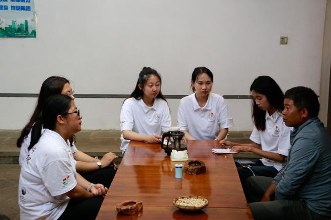 7月7日上午,实践团走进云南省腾冲市清水乡司莫拉佤寨村,参观走访了村寨内的各街道、民俗文化陈列馆、礼堂、民俗墙绘、民族文化活动广场等地,了解体会在党的领导下少数民族特色村寨建设情况与发展变化,深切体悟中国共产党人“为中国人民谋幸福、为中华民族谋复兴”的初心和使命。随后,实践团队成员拜访了村民李发顺家,调研村民生活状况、居住环境治理情况,体验了制作当地特色食品-米粑粑;采访了云南省腾冲市清水乡党委委员、副乡长、三家村村党总支书记、村委会主任赵家清同志,围绕乡村治理、环境整治、基层党组织建设、少数民族特色村寨建设等方面的问题,实践队员与赵家清同志进行了深入交流,了解到司莫拉佤寨村脱贫攻坚与乡村振兴的特色发展道路,体悟到基层党员干部深入一线、扎根乡村、助力脱贫攻坚和乡村振兴的奉献精神。