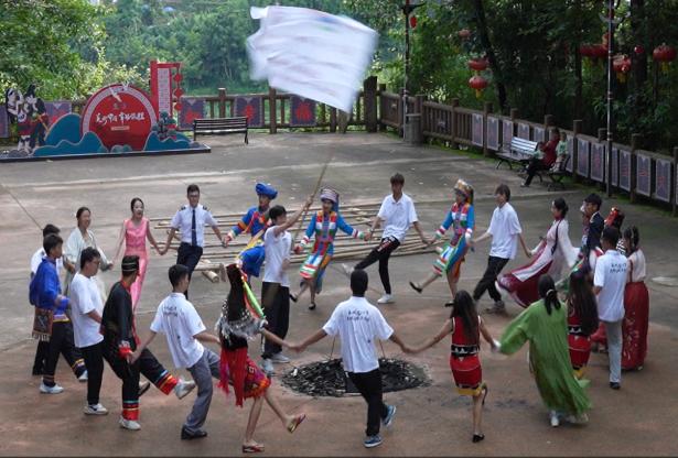 下午,实践团队成员来到当地佤族小学展开了航空知识宣讲,并且在当地文化广场开展了航空知识宣传集市。在活动中,实践团队成员看到了当地人民群众对航空航天事业的好奇和向往,他们参与活动时脸上洋溢着欢乐和满足,这种幸福感也感染着实践团队成员。傍晚时分,实践团队成员中的少数民族同学还穿上了自己的民族服饰,在民族文化广场和当地的村民们跳起了富有民族特色的“竹竿舞”和 “打跳”,大家手牵手、心连心、情系情,一支小小的舞蹈把所有人的心连结在一起。