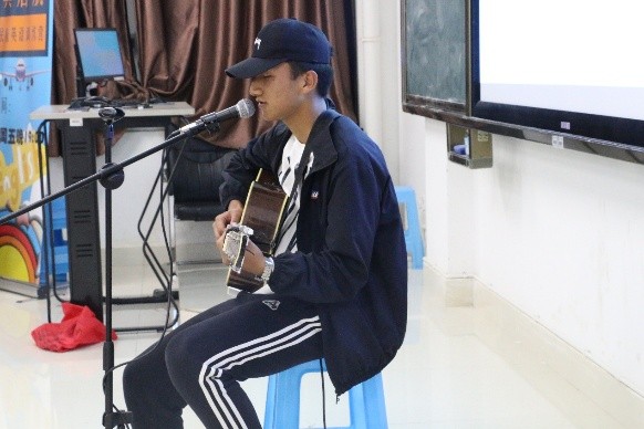 在本期活动中,2019级陈俊文带领新生乐队以一首《Yellow》破冰而出,其后飞行员听说英语教学002班的同学,以独奏、独唱、小合唱的形式演绎了《Lemon Tree》《Sailing》《500 Miles》《You Raise Me Up》等英文歌曲。歌声或深情或嘹亮,年轻人朝气蓬勃的自信和欢乐在这里绽放。在活动接近尾声的时候,100未来的飞行员,高声齐唱《Take Me to Your Heart》。此时,空气中都弥漫着,阳光帅气的青年人的风采。