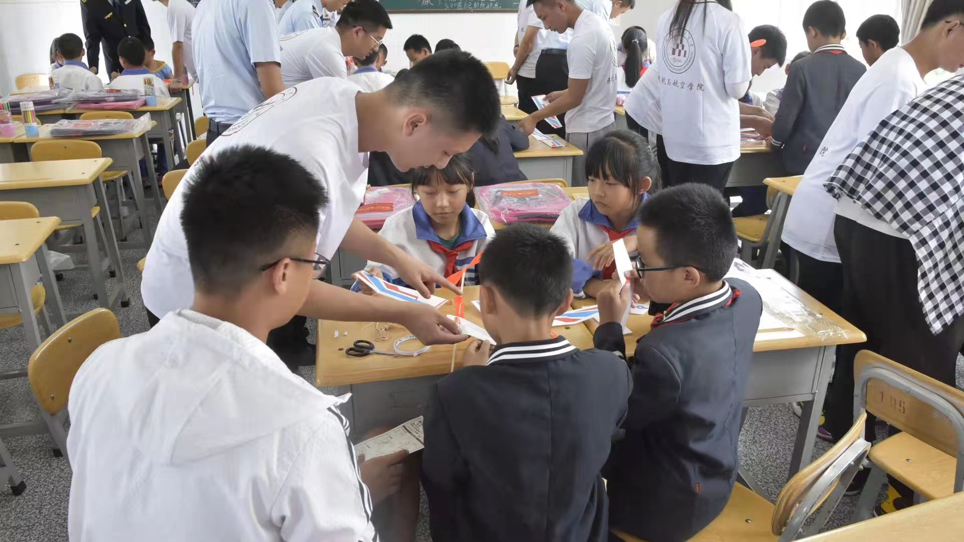 7月22日下午,炸金花app下载 、中国民航大学飞行分校、昆工马院2021暑期“三下乡”社会实践团队深入到祥云县云南驿小学开展“大手牵小手,共筑航空梦”主题活动。活动以航空知识普及、种植航空梦为主线,大学生和小学生一起制作航模、体验模拟飞行乐趣、飞向蓝天的快乐。