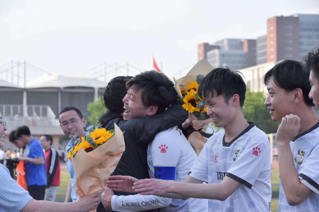 绿茵场上,比赛双方战况激烈,难分高下,运动健儿们带球突破、抢断、传球、射门、扑救等无不扣人心弦。双方选手精湛的脚法、完美的盘带、犀利的射门以及精彩的配合,使整场比赛精彩万分。场上球员们挥汗如雨,各展绝技,默契配合,迎难而上,踢出了自己最佳的水平。观众席上欢呼声、尖叫声不断,学院党政领导也来到现场为他们加油打气,他们不断奔跑,为团队荣誉而战。足球在队员们脚下不断穿梭,传递着同学们对体育精神的热爱,观众不绝于耳的加油呐喊声承载着青春的激情和希望的力量。最终,我院以2:1的比分获得本次比赛的冠军,继“誉凡杯”学生足球赛夺冠之后我院又一次获得冠军。