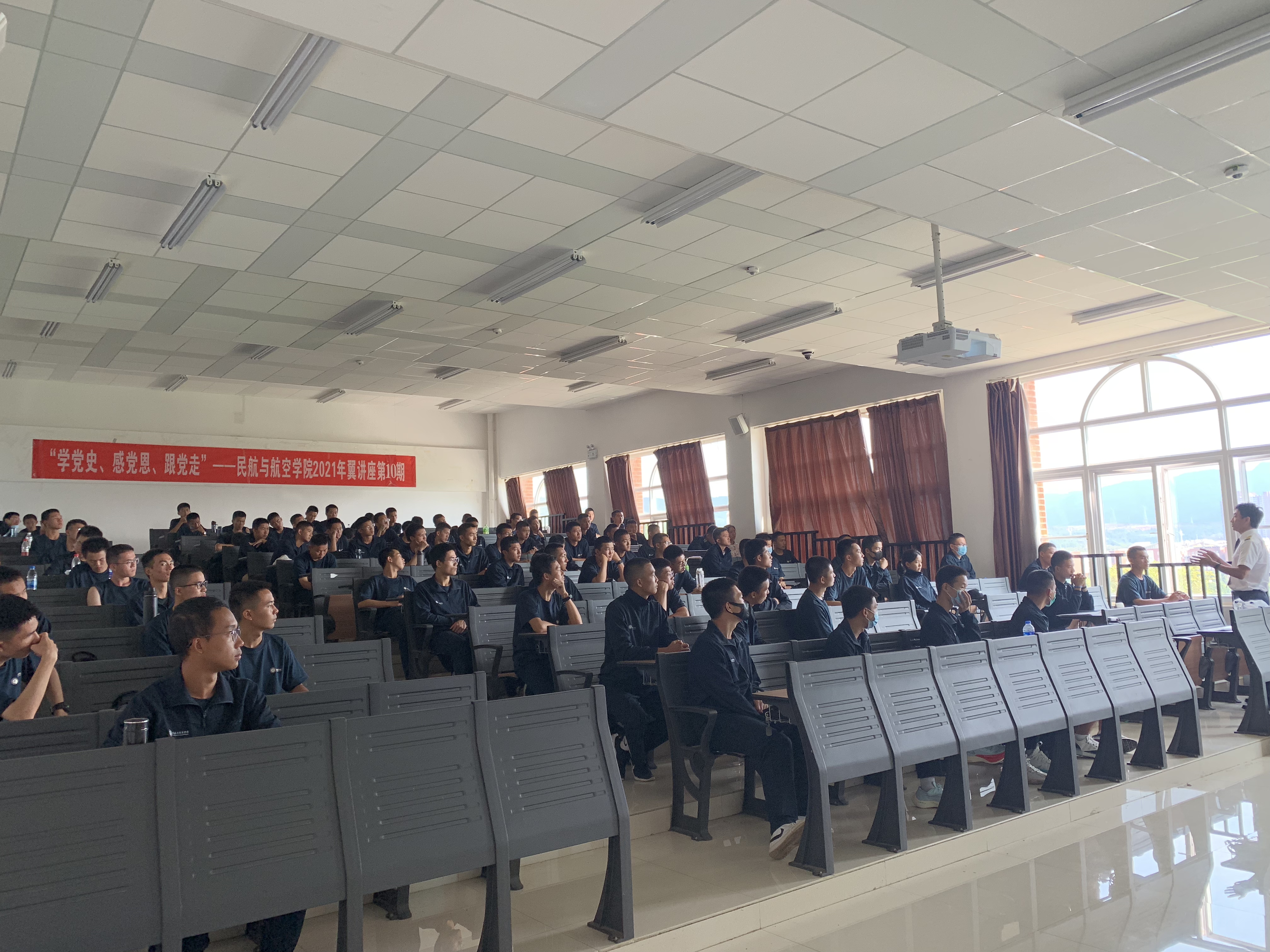 为进一步加强飞行技术专业学生作风建设,结合党史学习教育为师生办实事,10月8日,炸金花app下载 在公教楼344开展“学党史、感党恩、跟党走”航院2021年翼讲座第10期,邀请昆明航空飞行第二党支部书记方超,B737型飞机机长/教员、飞行部安技室经理白玛扎史到校,为2021级飞行技术专业学生做“飞行学员作风建设与职业规划”主题讲座。