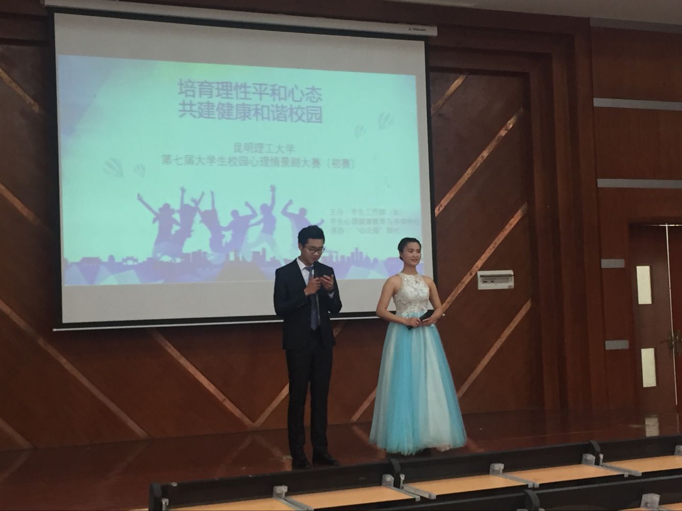 2017年4月28日13时30分,昆明理工大学第七届大学生校园心理情景剧大赛(初赛)在建筑楼200拉开序幕。本次大赛以“培养理性平和心态,共建健康和谐校园”为主题,旨在以心理情景剧的形式展现当代大学生如何以理性、平和的心态解决自己的学习、生活中的问题,培养积极健康的心理品质。