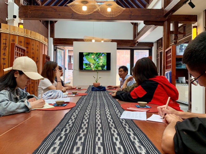 被誉为“中国民间扎染艺术之乡”的巍山县的扎染技术已经形成了工厂和企业,带动了当地的文化和经济,李石生先生就是传承扎染技术的一位彝族企业家。访谈中,李石生先生带领实践团队成员参观了扎染博物馆和扎染工厂,让队员们切身去认识扎染,讲述了自身30余年传承扎染的心路历程。彝乡南涧县也有剪纸艺术的流传,陈德先生用和蔼的微笑、最朴实的语言讲述着他对剪纸艺术的传承和坚持,作为云南省非物质文化遗产传承人,陈德先生将其一生融汇在剪纸中,一直在不遗余力地推广剪纸艺术,先后在云南省多所高校教授、推广剪纸技艺。“现在我做你们的老师,以后你们做我的老师更好”,这句朴实而简单的话实实在在地打动了每个人。