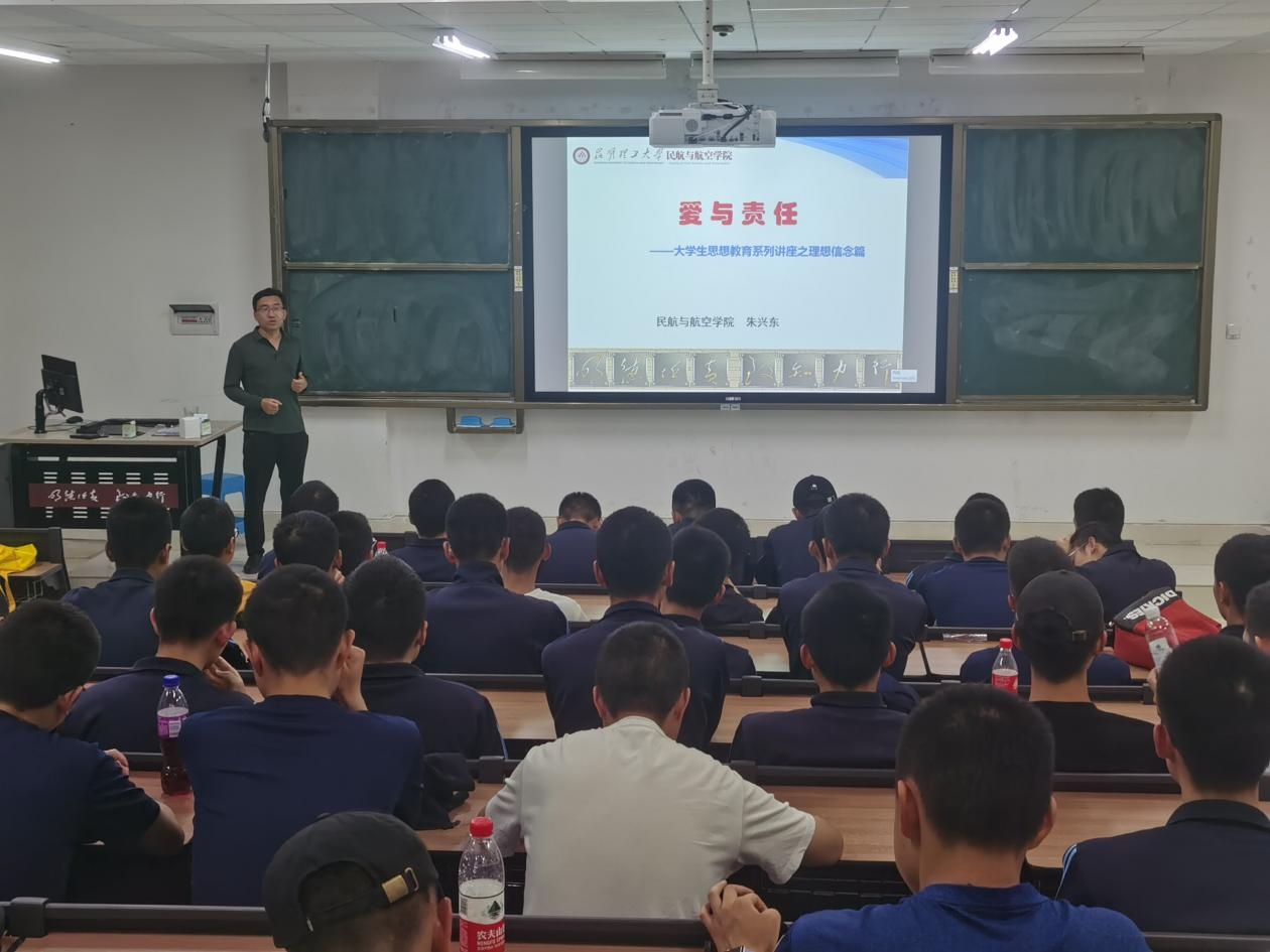 朱兴东副院长讲述了当代社会爱严重缺失的问题,并于飞行学员们进行了关于“为何当代社会爱会严重缺失”的深刻分析讨论。提出了聚焦学习,明确责任才能感受爱、付出爱、传递爱的观点。同学们收获良多,也在心中播种下了那颗传递爱与责任的种子。相信在未来他们走向工作岗位,坐进驾驶舱时,这颗种子已经长成苍天大树保护着国家与人民的财产与生命。