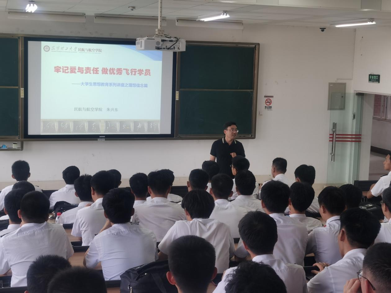 学院党委书记朱兴东以“牢记爱与责任,做优秀飞行学员”为主题,带领同学们学思践悟党的二十大精神,详细讲解民航安全、飞行员使命担当、飞行员价值理念以及专业要求等方面。朱书记强调,民航安全是一直以来亘古不变的话题,任何时候、任何环节都不能丢失,因此,民航始终将安全作为首要任务来抓。学院也一直在深入推进飞行学员的作风建设,将作风建设融入制度、形成机制、化为责任。每个民航人都应该将安全意识刻在骨子里,成为身体的一部分,这也是飞行大学生义不容辞的责任和担当。