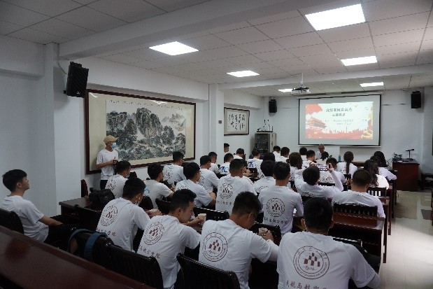 参观活动最后,在红色传承教育馆内,全体党员聆听了王式雄老师以“良好家风育英杰”为题的主题党课,从王复生、王德三烈士的生平经历以及家庭教育出发,带领全体队员缅怀革命先烈、致敬革命功勋,鼓励同学们树清正家风、养浩然之气,进一步激发广大青年学生发扬红色传统,传承红色基因,赓续红色血脉,以无悔青春献身民航、以满腔热血报效家国。