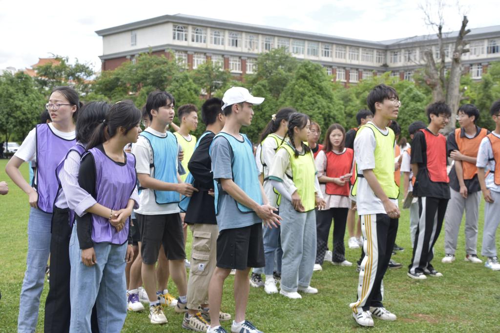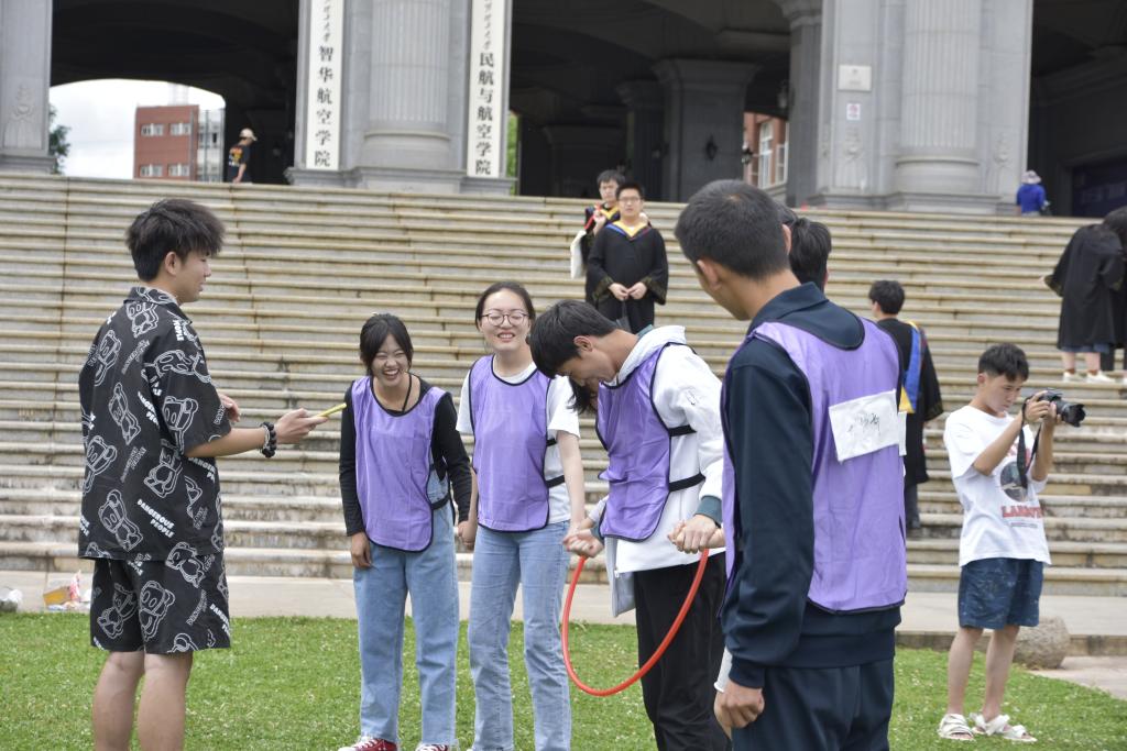 为提高学院青马学员综合素质,增强团队凝聚力,锻炼学员间的协作与交流能力,炸金花app下载 于6月2日下午在公教楼大草坪开展“喜迎二十大 奋进新征程”航院2022年翼阳光第13期——“炼青春年华 铸时代青年”主题活动。团委老师杨杰,辅导员张秋月、徐昊,青马学员及其他学生代表共计60余人参与。