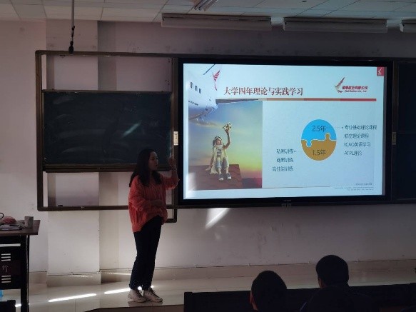 11月17日上午,炸金花app下载 在公教楼344开展2020年翼讲座第14期——“如何成为一名合格的飞行员”主题讲座,邀请瑞丽航空学员管理中心经理张斯茜到校,为2020级飞行技术专业学生介绍职业生涯定位和规划。