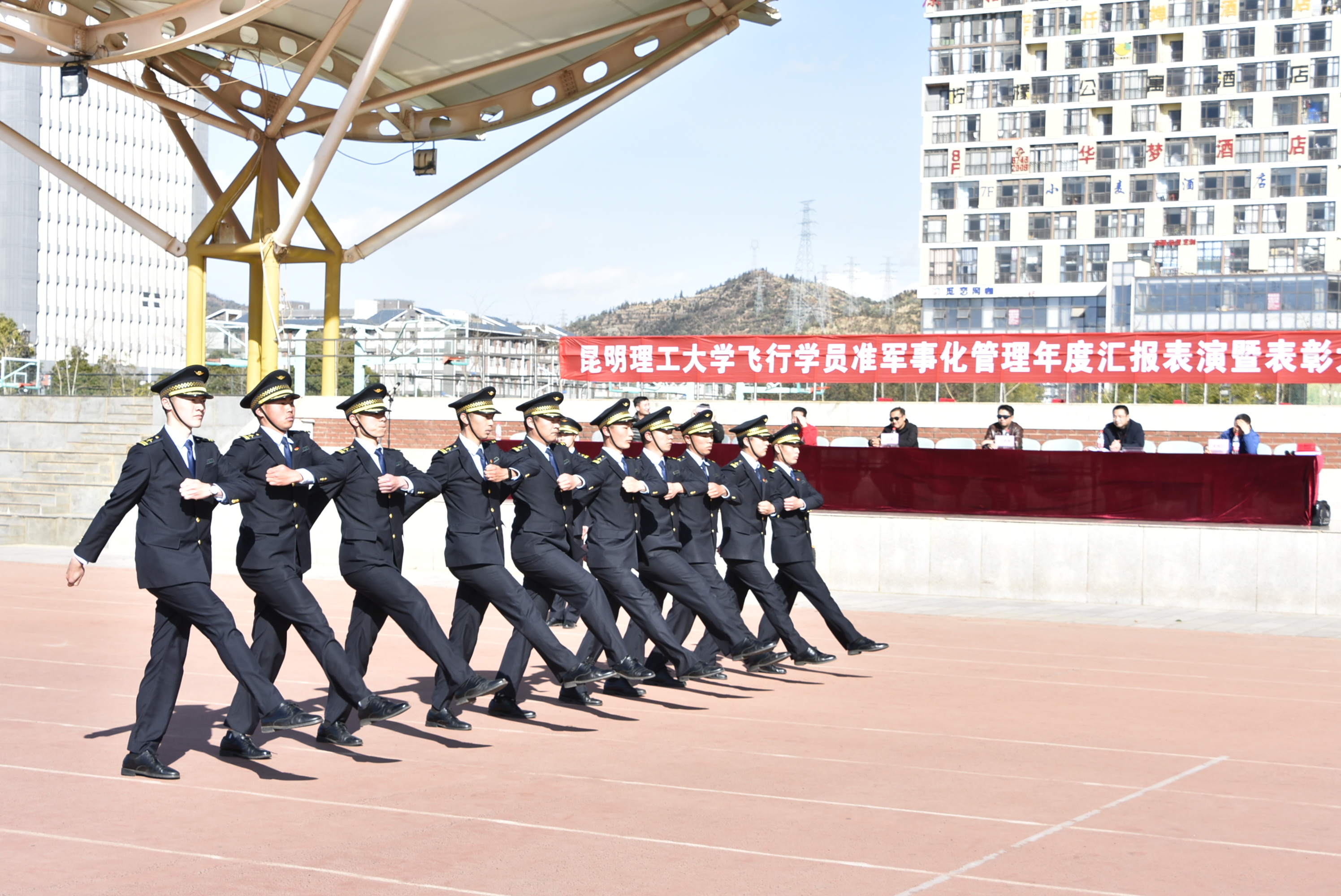 为检验飞行学员准军事化管理成效,进一步加强飞行学员精神面貌培养和作风纪律养成,同时为表彰先进、树立典型,激发全体飞行学员奋勇拼搏、奋发有为、奋力向前的斗志,1月7日下午,昆明理工大学飞行学员准军事化管理期末汇报表演暨表彰大会在怡园田径场举行。学生工作部(处)领导、学院党政负责人、教师代表及全体飞行学员参加。