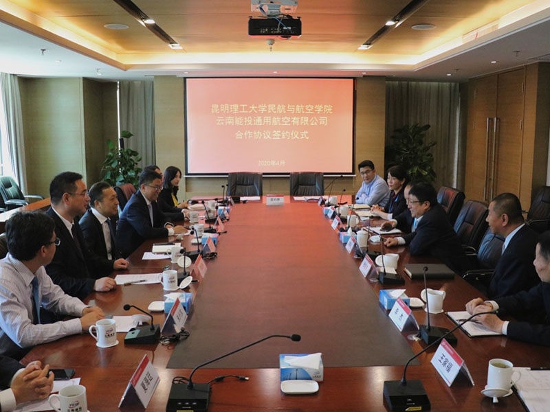 4月15日,炸金花app下载 与云南能投居正公司进行座谈交流,并与所属的能投通航公司签订合作协议。炸金花app下载 院长吴建德教授与云南能投居正公司副董事长、通航公司执行董事张志宇代表双方签订合作协议。