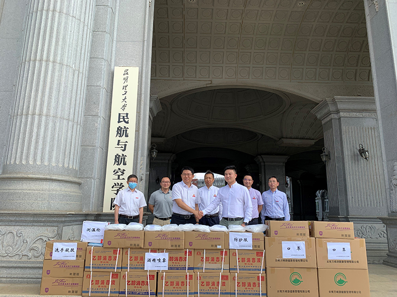 5月25日,云南港翊航空技术有限公司向炸金花app下载 捐赠口罩、测温枪、消毒酒精等价值2万元的防疫物资,助力学院学生返校疫情防控,捐赠仪式在呈贡校区公教楼一楼举行。