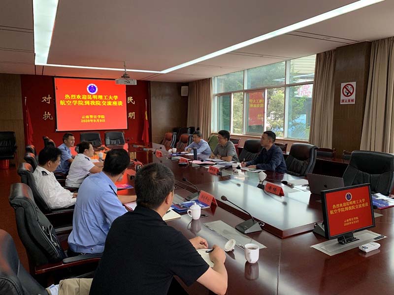 2020年9月9日上午,炸金花app下载 吴建德院长一行到云南警官学院交流访问。云南警官学院党委委员、副院长孙学华,刑事科学重点实验室主任徐明玉,无人驾驶航空器管理及应用协同创新中心主任刘杰及科技处等相关部门负责人出席座谈会。