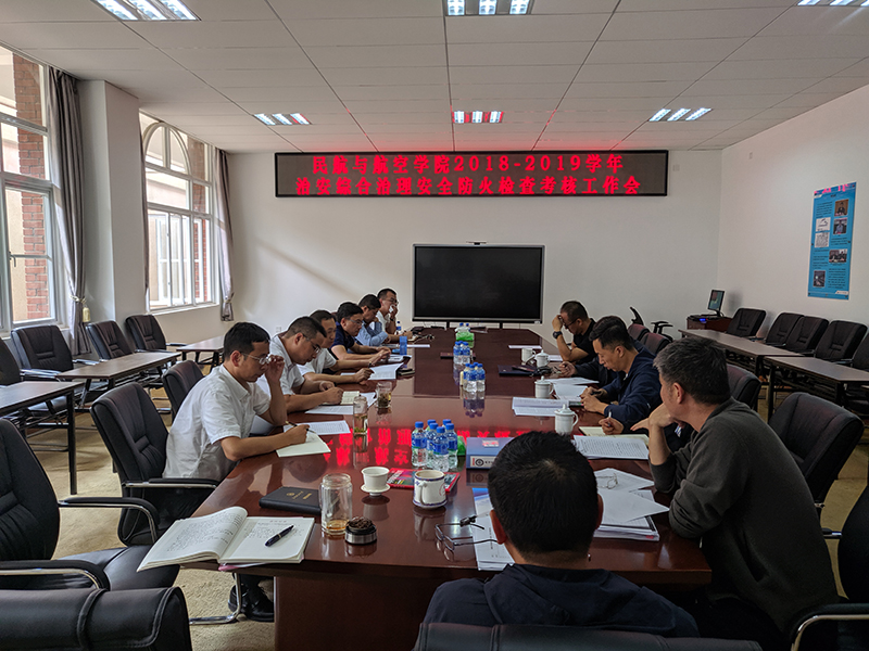 9月19日下午,学校治安综合治理、安全防火工作检查考评小组第五组到航空与民航学院,对2018—2019学年度治安综合治理、安全防火工作进行检查、考核。学院党政领导、院长助理以及各科室负责人、实验室管理人员等参加会议。