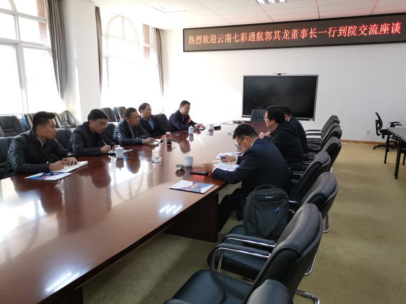3月19日上午,七彩云南通用航空有限责任公司董事长郭其龙一行到炸金花app下载 访问交流,就飞行员联合培养、航校建设等合作事宜进行座谈。学院党政领导及相关人员参加座谈。