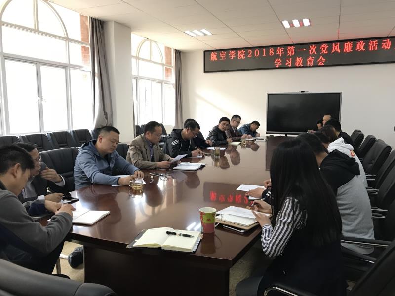 4月19日下午,航空学院在335报告厅开展2018年度第一次党风廉政活动月学习教育会,学院党政领导出席会议,全院教工参加学习教育。