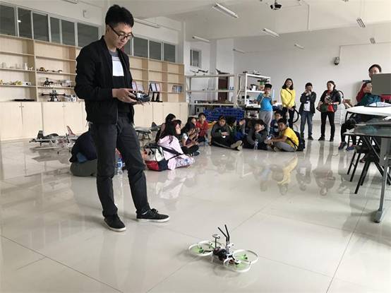 同学们参观了航空学院展览室、文化长廊和实验室,并在模拟飞行实验室进行了模拟飞行体验。随后,学院老师为泰国学生们介绍了铂骏创客无人机研发中心的相关作品并进行了无人机的试飞。