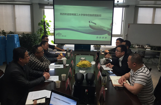程道华校长对袁希平副校长一行表示热烈欢迎,在详细介绍了学校办学情况后,对双方合作充满期待,并表示将全力支持昆明理工大学民航学院飞行技术专业申报。袁希平副校长代表学校对湖北蔚蓝国际航空学校的信任与支持表示感谢,并介绍了学校民航学院筹办背景和相关历程。