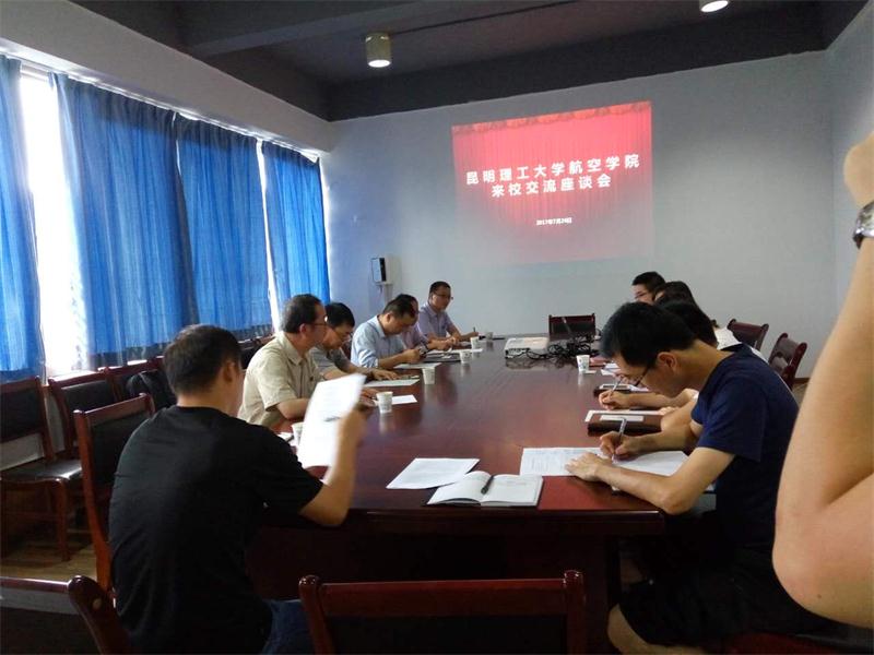 2017年7月26日上午,昆明理工大学航空学院常务副院长沈颖刚教授一行四人到贵州理工学院航空航天学院和贵安煜宸科技有限公司进行交流访问。