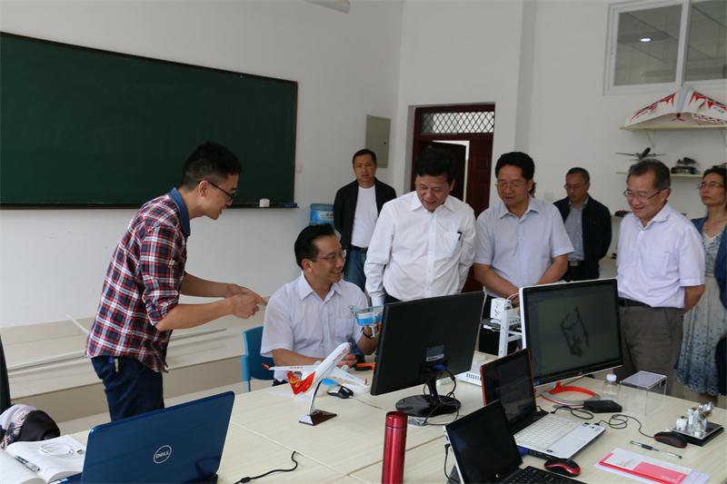 2016年6月24日下午,省人民政府高峰副省长一行,率省级有关部门领导就大学生创新创业到昆明理工大学检查指导工作,并在校党委书记张英杰,副校长王华、易健宏,校纪委书记陶光荣,副校长周峰越、袁希平以及党办、校办等职能部门领导陪同下,到航空学院视察。