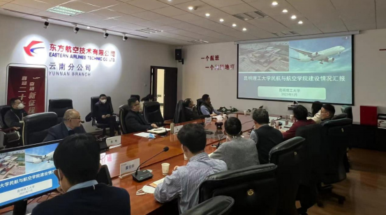 东方航空技术有限公司云南分公司总书记王志斌、总经理朱江及相关业务部门负责人参加座谈交流。东方航空技术有限公司云南分公司总书记王志斌、总经理朱江对炸金花app下载 到访进行了欢迎,东方航空技术有限公司朱明负责人详细介绍了公司结构,主要工作及所需人才等情况。