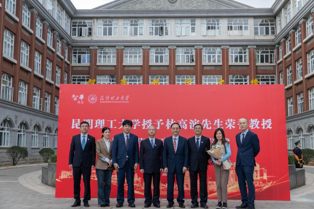 10月26日,昆明理工大学授予香港智华基金林高演主席荣誉教授暨智华奖学金颁奖仪式在智华航空大楼智华学术报告厅举行。昆明理工大学党委书记唐家华,香港智华基金主席林高演、顾问潘旭波、主席助理蔡妙瑛、经理助理杨祖伟、助理陈琼出席仪式。仪式由昆明理工大学党委常委、副校长潘学军主持。学校党委办公室、校长办公室、对外交流处、教务处、学生处负责人,智华航空学院班子成员及智华奖学金获奖代表140余人参加。