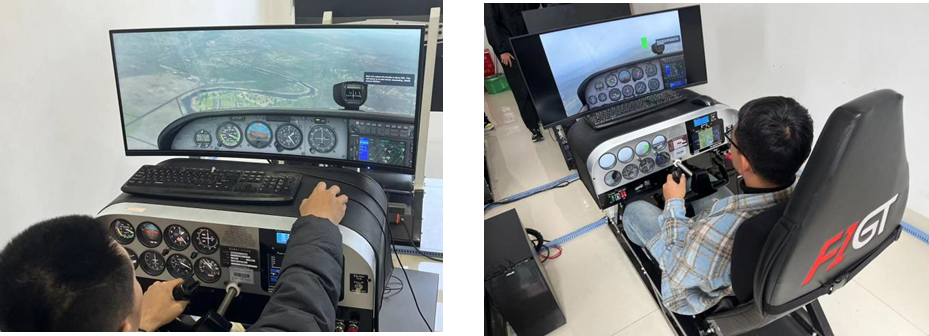 比赛进行中,选手正在操作模拟飞行器