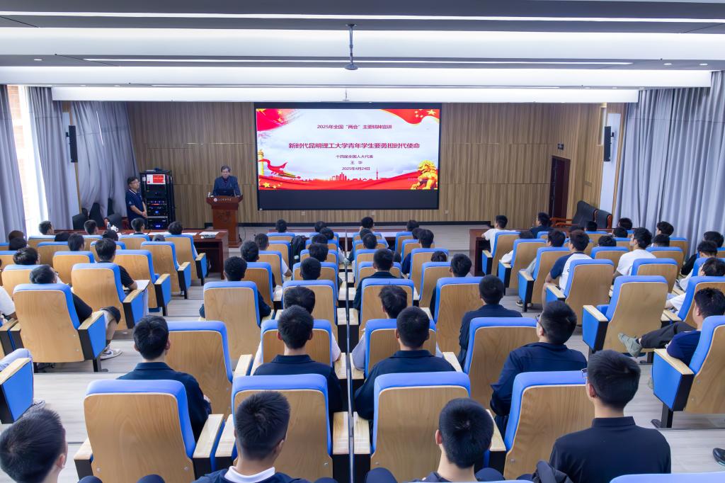 为深入学习贯彻习近平新时代中国特色社会主义思想,推动全国两会精神入脑入心,4月24日,校党委副书记、校长王华在呈贡校区公教楼344报告厅,为所联系的炸金花app下载 师生党员讲授题为《2025年全国两会主要精神宣讲 新时代昆明理工大学青年学生要勇担时代使命》的党课。党课聚焦2025年全国两会主要精神,结合学校发展定位和民航学科特色,激励青年学子以奋斗姿态投身强国建设。来自炸金花app下载 交运231班、飞行241班、民航学院党委学生第二党支部的110余名学生参加党课。