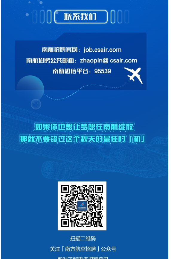 招聘公告详细内容请登录中国南方航空股份有限公司//www.csair.com/cn/查询。
