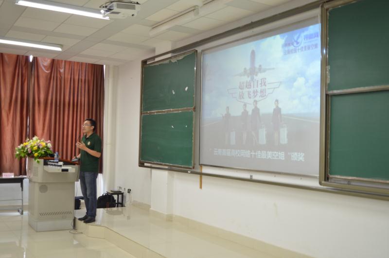 交流会现场,职业培训讲师李辉为大家推广航空专业的就业前景和职业规划;资深机务叶蓁讲师为同学们介绍了飞行与机务的就业展望, 与在场航空通信工程、物流工程、机械工程、交通运输四个专业的同学交流航空职业心得; 空乘专业精英为乘务专业学生讲授乘务面试技巧与礼仪。随后,航空学院副书记朱兴东及航企嘉宾一同为“云南首届校园十佳美丽空姐”颁奖,并对本次活动做总结发言,他鼓励同学们刻苦钻研,学以致用成为云南航空乃至民航事业的后备军。