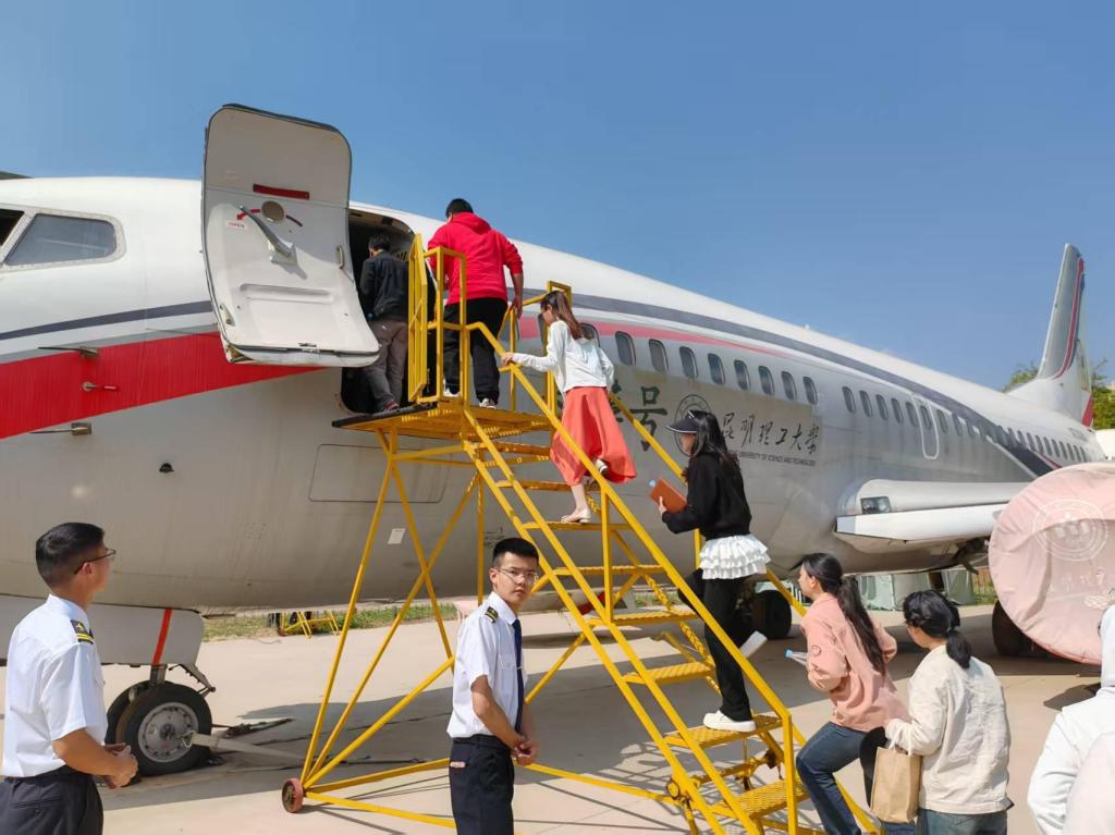 随后,党员同志们来到学院民航机务实训基地(波音737-300飞机停放处)。这架昔日驰骋于碧空之上的机型,现今化身为一堂鲜活的航空知识讲堂。学院的专业人员向党员同志们详尽阐述了飞机的构造、飞行原理以及航空安全相关知识。从机翼的设计奥妙到发动机的运作机制,从驾驶舱的仪表盘布局至客舱的服务设施配置,每一处细节均令党员同志们眼界大开。党员同志们还深入飞机内部,亲身感受了飞机客舱的环境,从而对航空知识 有了更为直观、更为深刻的理解。